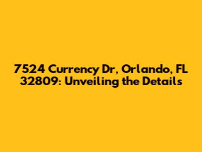 Hey guys! Let's dive into everything you need to know about 7524 Currency Dr, Orlando, FL 32809. This isn't just an address; it's a potential home, a business location, or simply a point of interest. We’re going to break down the details, explore the neighborhood, and give you a comprehensive overview. So, buckle up and let's get started!