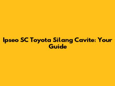 Ipseo SC Toyota Silang Cavite: Your Guide