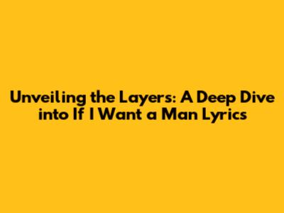 Unveiling The Layers: A Deep Dive Into 'If I Want A Man' Lyrics